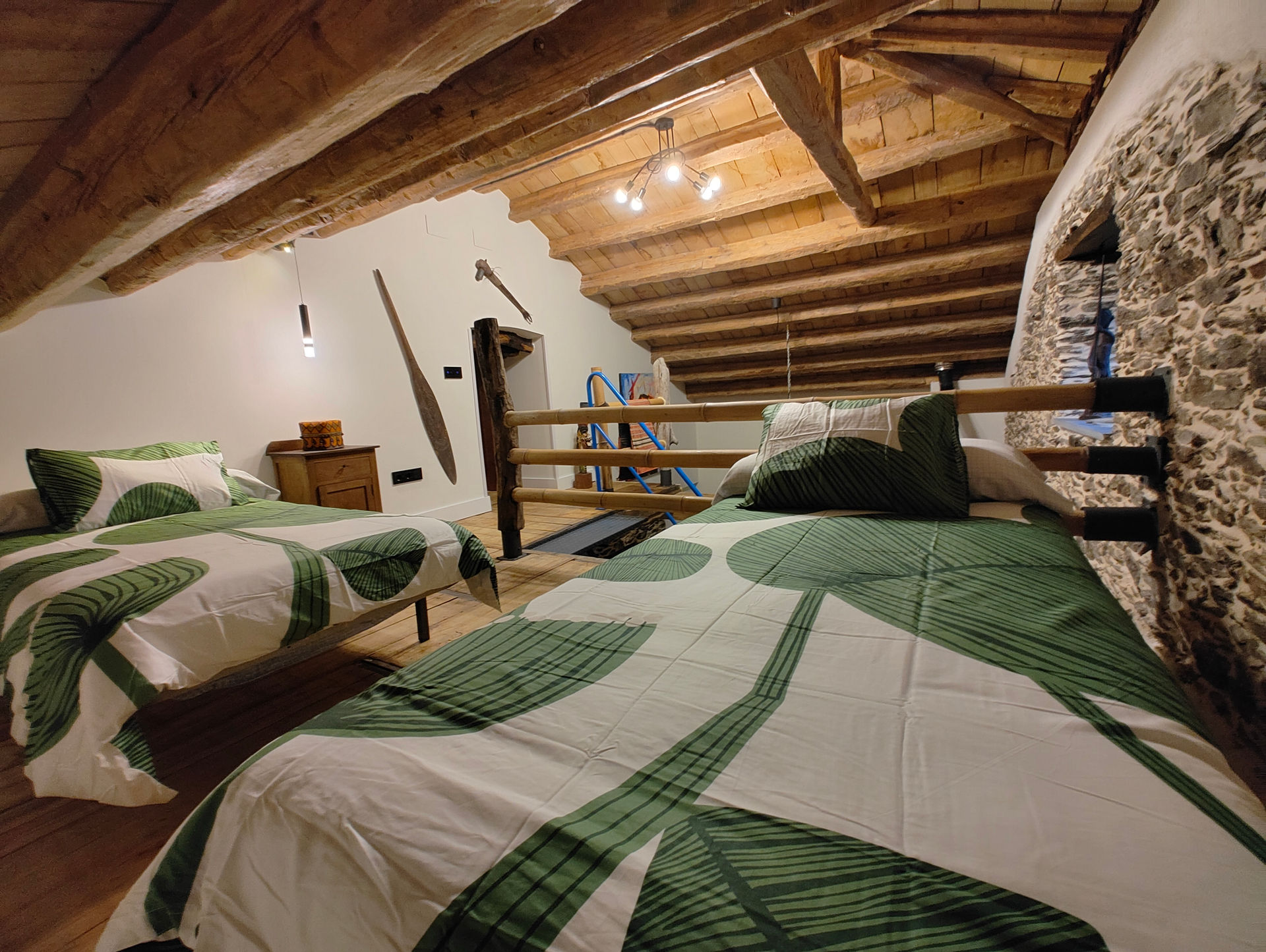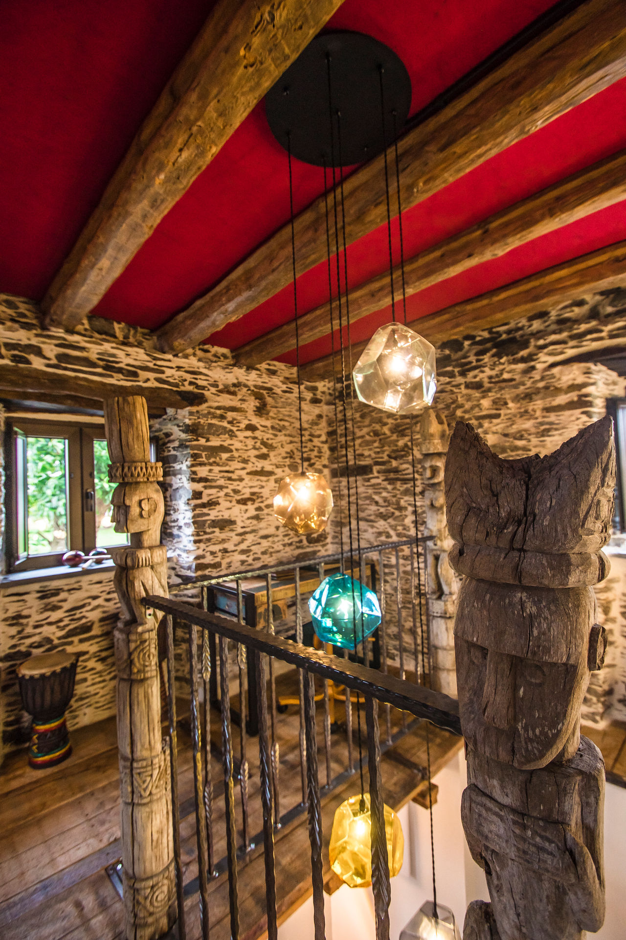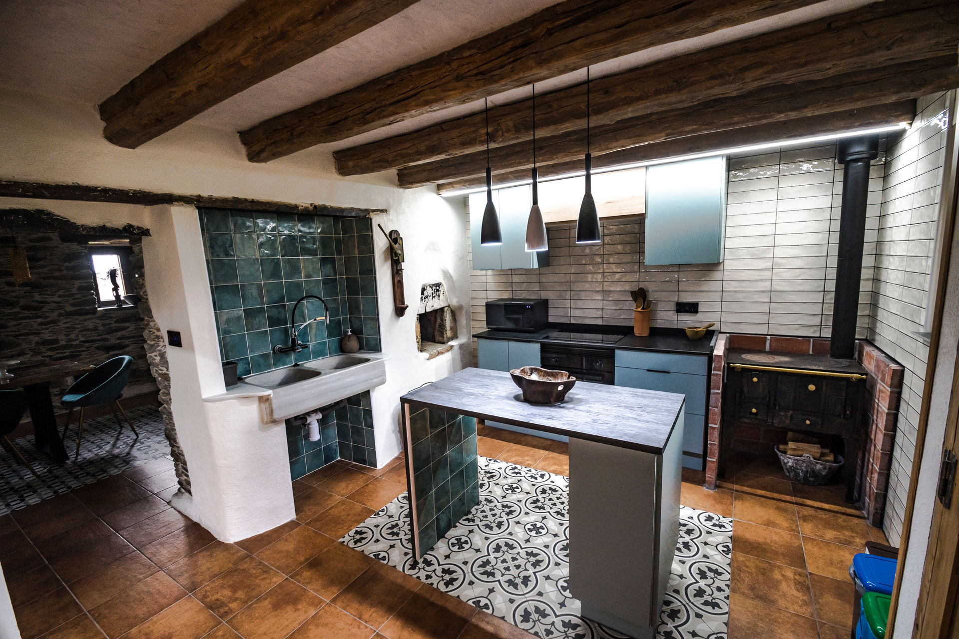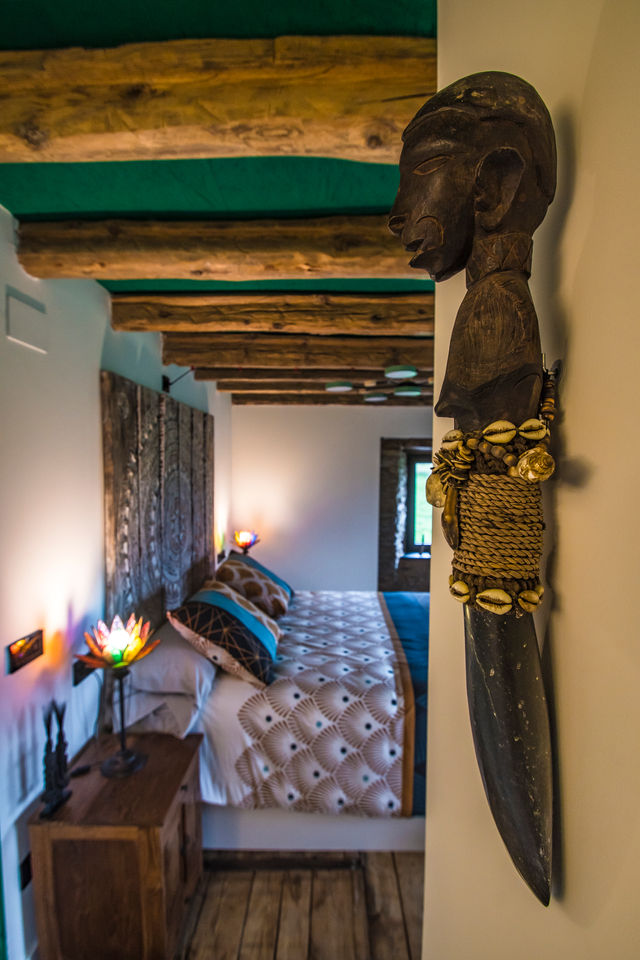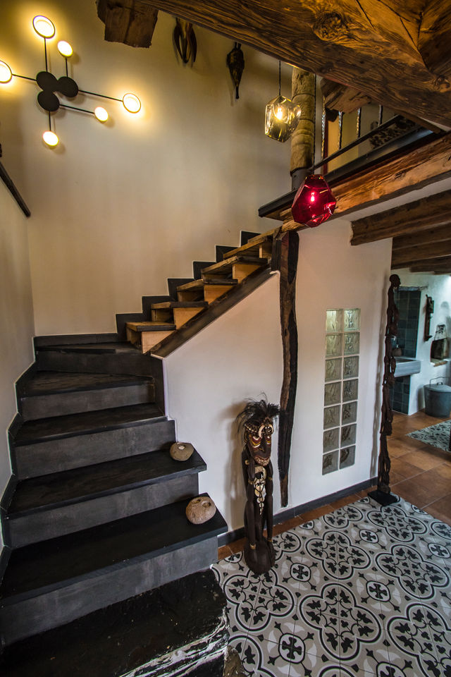 Un diseño interior moderno y confortable en combinación con la arquitectura tradicional, un espacio de concepto abierto y luminoso, decorado con estilo de diversas culturas y viajes a lo largo del mundo, creando un ambiente de paz y relajación ideal para disfrutar de la estancia, descansar y conectar con la vida rural.